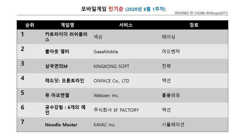 2020년 6월 1주차 모바일 게임 순위 네이버 블로그