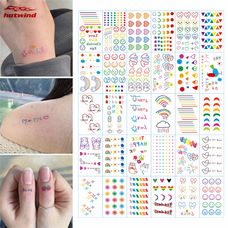 Hw 30pcs Colorful Temporary Tattoo Stickers Rainbow Smiley Love Heart Bear Body Art Tattoo Decals Shopee Philippines